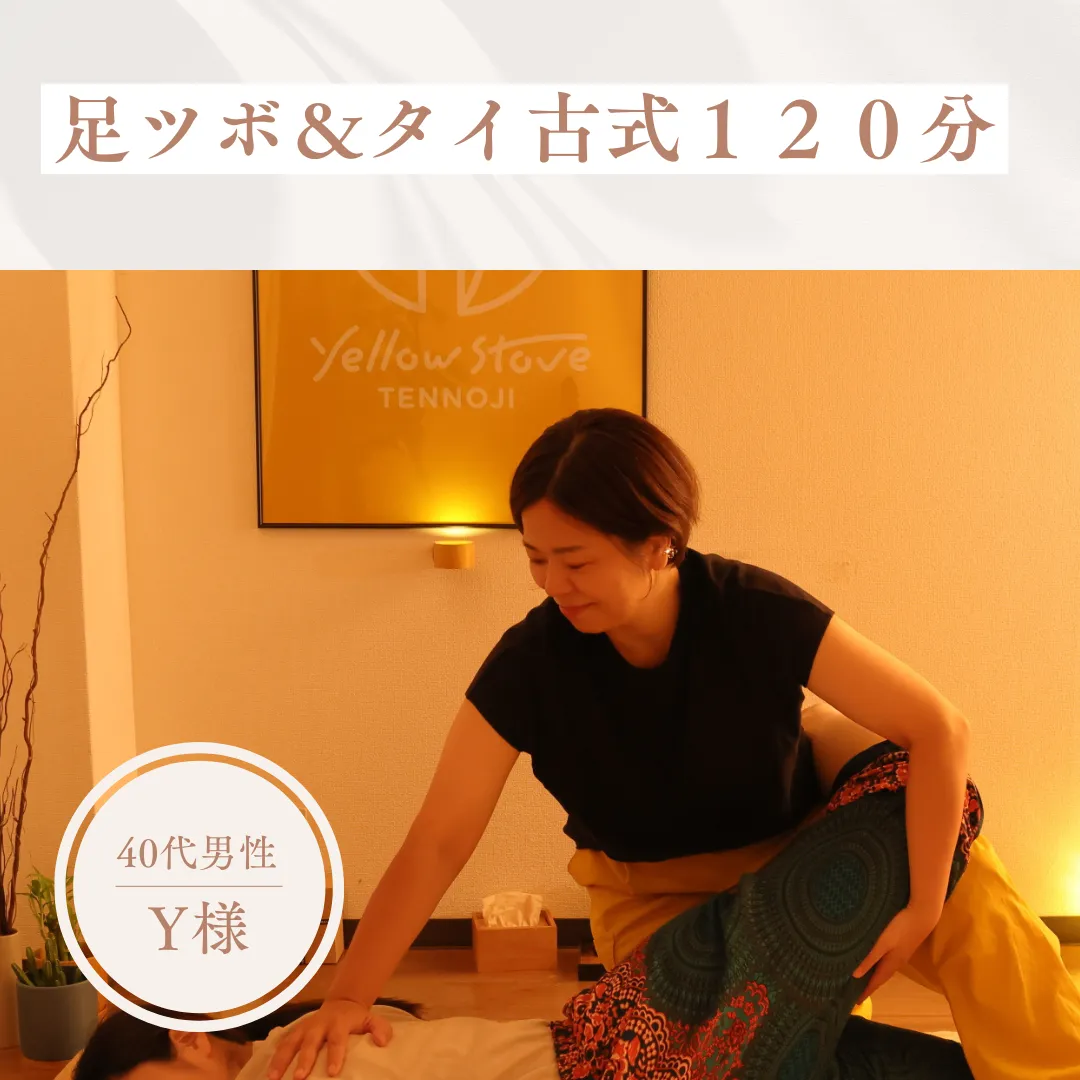 前日に会社の大きなイベントが終わりご褒美&身体の回復で伺いました。何度か伺ってますが、このお店の特徴としては、やはり"確かな技術"と"効果の持続性"だと思います。慣れない立ち仕事で、足のみならず腰含めた下半身全体の疲労を訴えたところ、足つぼからスタートし、タイ古式で全身を施術してもらいました。足つぼでは固くなった足裏を笑顔でゴリゴリ押され、施術中は本当に悶絶するものの、足つぼが終わった段階で寝ている状態でも足が軽くなったように感じる程に即効果を感じました。またタイ古式では全身の疲れを一か所ずつ解きほぐすように曲げ伸ばしてもらい、施術直後から全身の疲労感がかなり改善されました。また"効果の持続性"については、明らかに週末をゆっくりしても翌週まで残ることを覚悟していた疲れが取れただけでなく、週末には予定を入れられるほどの回復を感じました。天王寺駅からは少し距離がありますが、行きと帰りの歩きで回復を実感できるので個人的には適度な距離が気に入っています。お店の雰囲気もとても良いので諸々気に入っており定期的に通わせて頂いていますが、今後もよろしくお願いします。