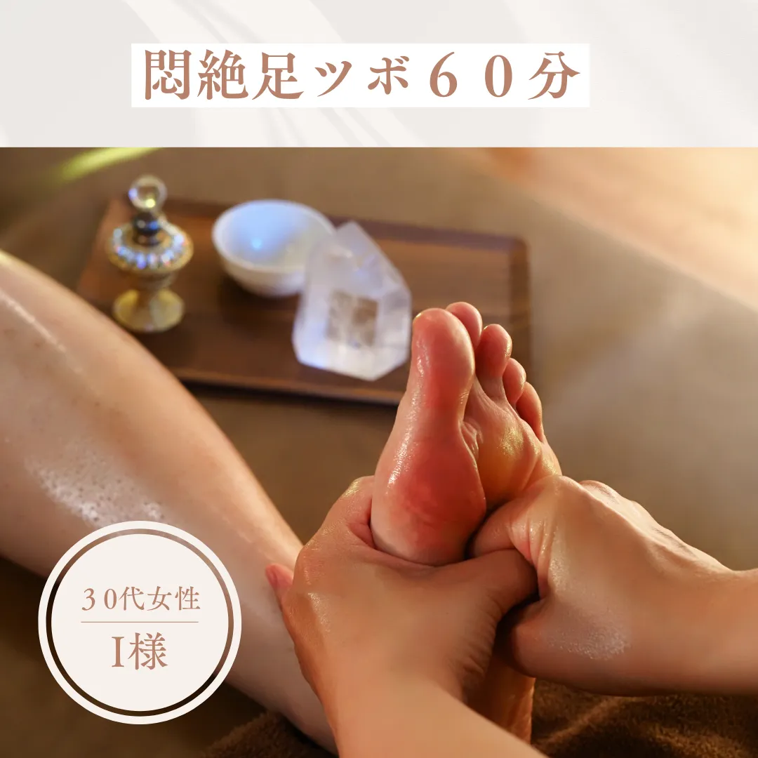 I様 足ツボが月一の楽しみ。自己流では難しい正確なツボ押しと力加減で痛気持ち良い時間を過ごせています。